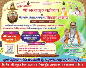 हनुमंत निवास आश्रम, पिपलखूटा में 30 अक्टूबर को अन्नकूट महोत्सव और विशाल भण्डारा