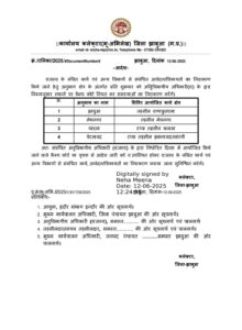 झाबुआ- कलेक्टर नेहा मीना के निर्देशानुसार राजस्व के लंबित कार्य एवं अन्य विभागों से संबंधित आवेदन व शिकायतों के निराकरण करने के उद्देश्य से झाबुआ ,मेघनगर , थांदला, पेटलावद, अनुभाग क्षेत्र के अंतर्गत प्रति शुक्रवार को अनुविभागीय अधिकारी राजस्व के द्वारा कैम्प कोर्ट लगाना है