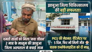 झाबुआ जिले की स्वास्थ्य सेवाओं में आए क्रांतिकारी सुधार और चिकित्सकों के सेवा भाव ने एक बार फिर एक परिवार की खुशियाँ लौटने में सफलता प्राप्त की है। जिला चिकित्सालय के पीडियाट्रिक इंटेंसिव केयर यूनिट (PICU) की टीम ने मस्तिष्क ज्वर (Encephalitis) से जूझ रहे 2 माह के मासूम को मौत के मुँह से बाहर निकालकर जिले की बेहतर होती स्वास्थ्य सुविधाओं का प्रमाण दिया है।